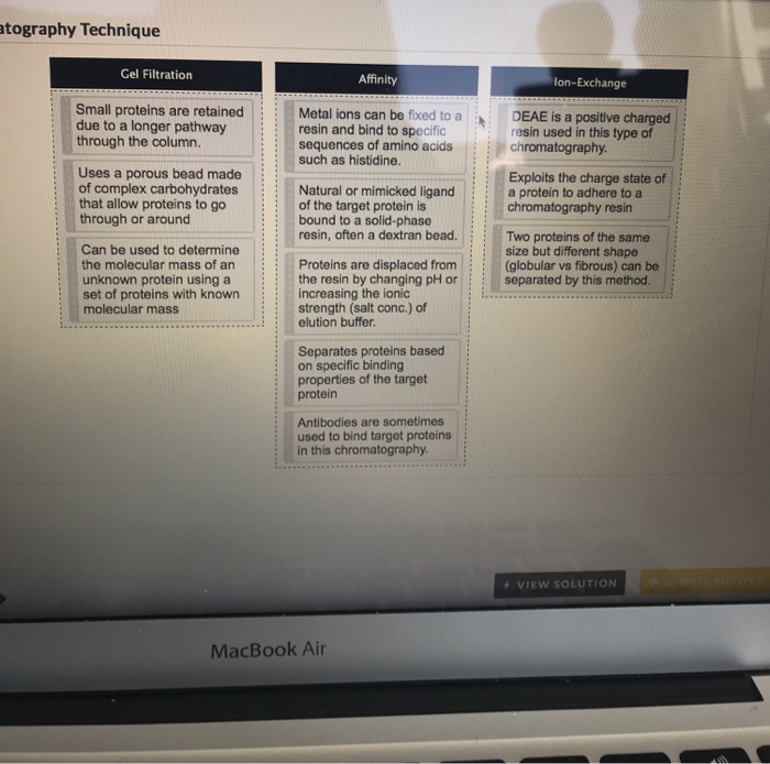 Solved Tography Technique Gel Filtration Affinity Metal Ions Chegg Com